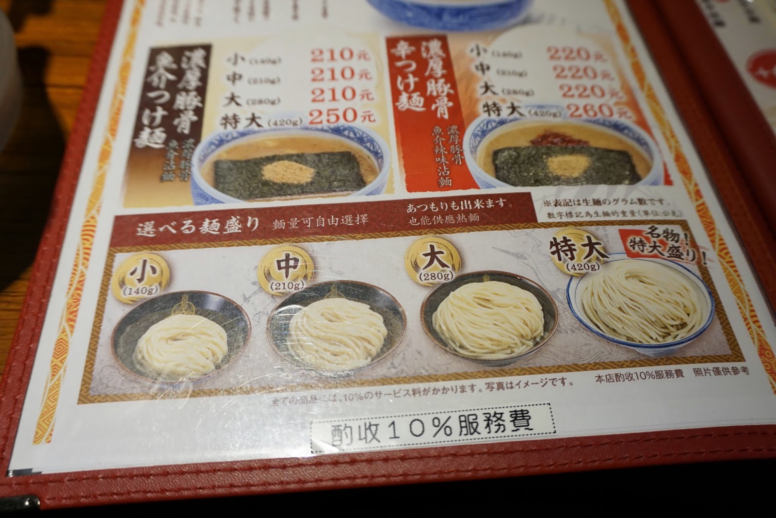 濃厚豚骨魚介沾麵小中大都是$210