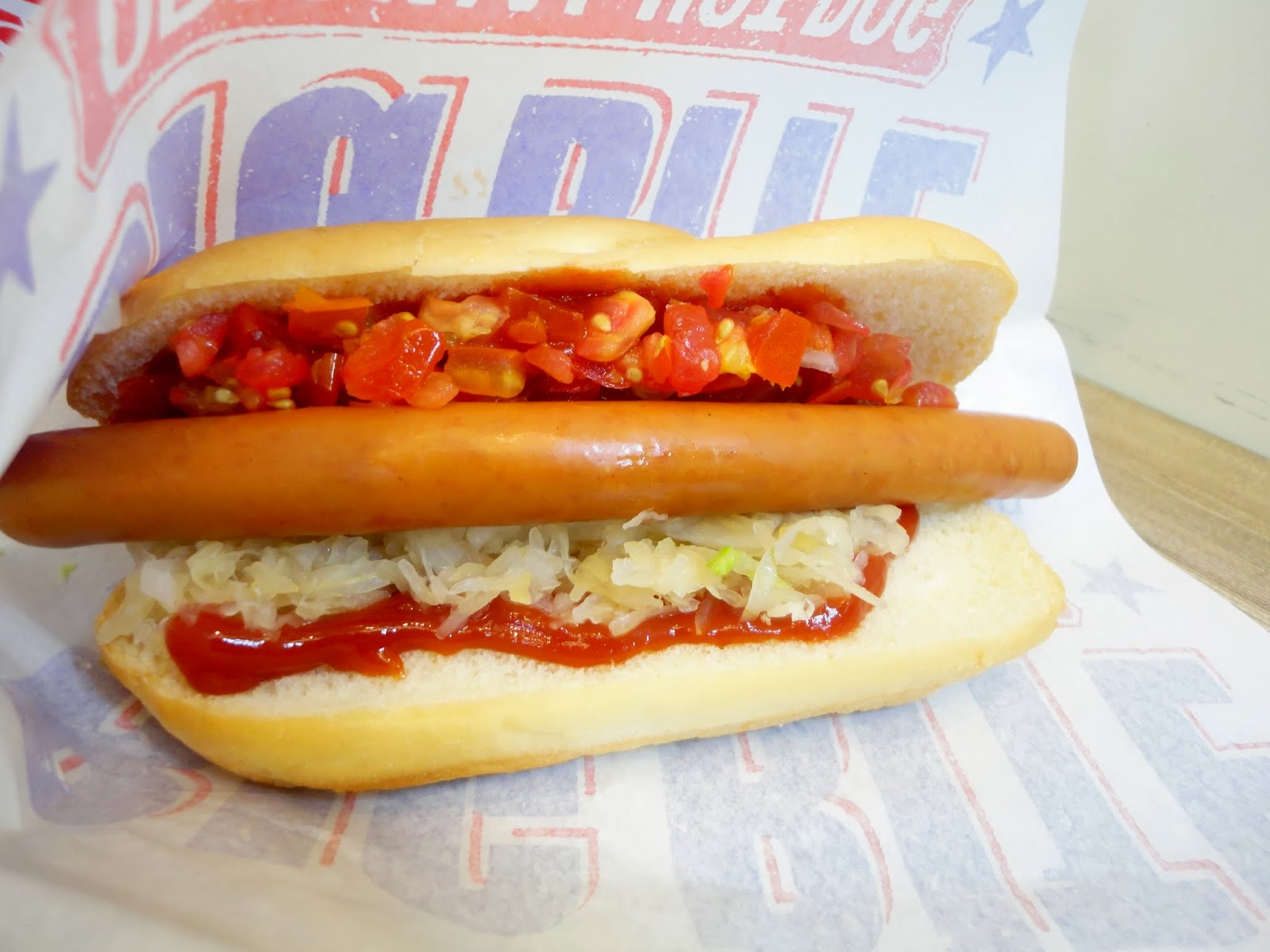最近在7-11吃到新的大亨堡,據說是已經推出很久的限定門市服務,在大亨堡裡加入新鮮的蔬菜跟潛艇堡很像,自助餐檯上提供四種配料,吃了幾天發現番茄、萵苣與洋蔥是固定的,另外有美式酸黃瓜醬、酸菜、墨西哥辣椒或大黃瓜切丁四擇一,還有三種水煮香腸,好吃程度分別是慕尼黑德式香腸 普羅旺斯白腸 紐約客熱狗,紐約客雖然看起來比較粗,但吃起來很很普通,其他兩款都非常好吃不分軒輊,慕尼黑德式香腸吃起來很像是博客Q肉丁德國香腸,皮脆肉香,普羅旺斯白腸的肉吃起來比較自然,好吃~,還有麵包也換新的,號稱減油糖一半,從外觀看起來很像是軟法麵包,不過吃起來基本上跟之前的麵包是一樣的~